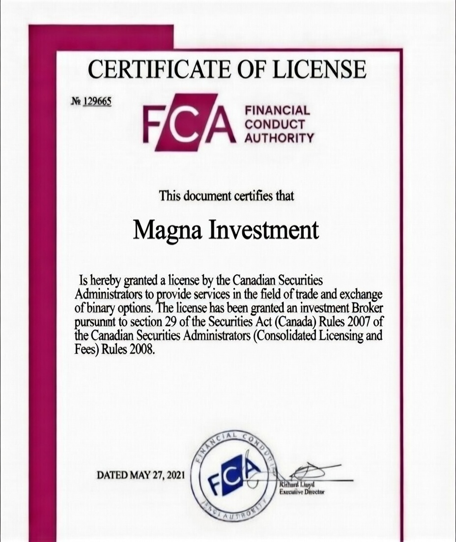 As a financial institution, we are well aware that money management requires a transparent and trusting relationship between a client and a brokerin the market. Therefore, we are always ready to provide our partners with any information they may be interested in. We always conduct our business openly, and our activities are absolutely legal. Magna Investment is an officially registered company operating within the framework of international financial legislation, which ensures protection of our users both from the legal and financial side.